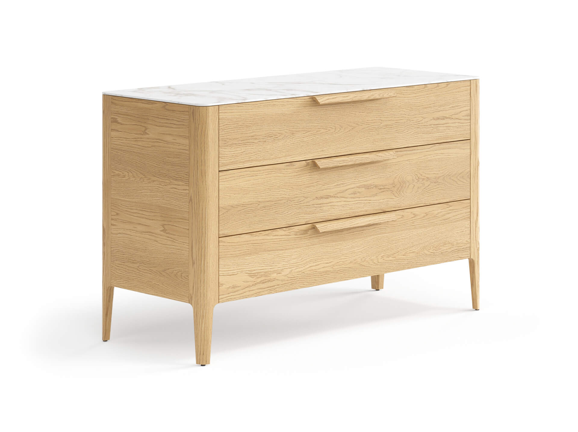 Изделие внесёт в пространство спокойствие и надёжность, искусно сглаженные формы и древесные тёплые отделки добавят природные мотивы. Благодаря скрытым направляющим выдвижных ящиков вид изделия остаётся безупречным всё время пользования. Количество циклов открывания и закрывания — 80 000. Это значит, что если вы будете пользоваться комодом дважды в день, изделие будет оставаться в идеальном рабочем состоянии и радовать вас примерно 55 лет.