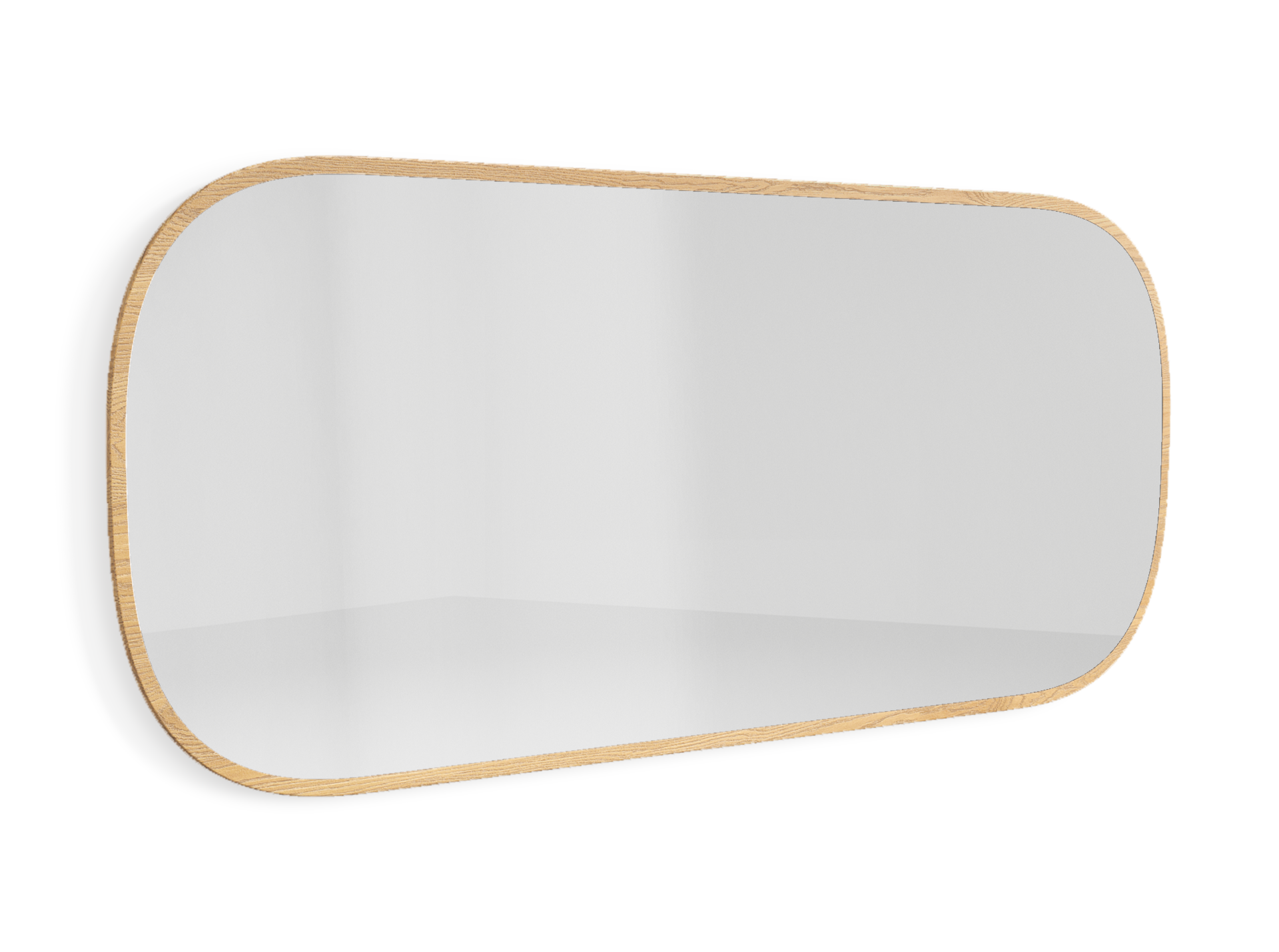 Стильное зеркало гармонично дополнит современный интерьер спальни, гостиной или коридора. Аккуратная рама, обрамляющая зеркало, полностью изготовлена из массива дуба, что делает конструкцию прочной и долговечной. При этом край рамы остаётся утончённым и лаконичным. Натуральные матовые оттенки дуба и округлые формы наполняют пространство красотой природы.